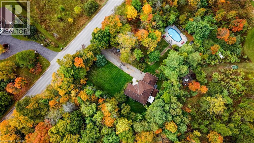 Welcome to your private oasis in the heart of Puslinch, a peaceful country setting just minutes from all amenities, backing onto Victoria Park Valley Golf Club. Set on 1.4 acres of tree-lined privacy, this 4-bedroom, 2.5-bathroom home is as beautiful inside as it is outside. With beautiful snowfalls, the landscaped property offers a peaceful backdrop for cozy nights in. And when summer rolls in, the property transforms into a perfect outdoor retreat, offering multiple spaces to relax and entertain. Play lawn games on the open yard space, enjoy al fresco dining in the outdoor kitchen beside a tranquil waterfall, or unwind by the saltwater pool tucked away among mature trees. With unique local experiences nearby, from snow yoga sessions with friendly alpacas, to walking out your back door for a quick round of golf, you’ll love the year-round charm this community offers. Inside, the home has been thoughtfully updated to blend modern comfort with timeless style. The main floor renovation (2022) features hardwood flooring, fresh paint, updated lighting, and a stunning kitchen with Corian countertops and backsplash, custom cabinetry, stainless steel appliances including a built-in oven and microwave, and an expansive island—ideal for casual meals or gathering with friends and family. You'll love the sunlit living room with large windows overlooking the private backyard, and the 3-season sunroom offers a quiet retreat to relax. Upstairs, you’ll find four generously sized bedrooms. The primary suite includes his-and-hers closets and a renovated 4-piece ensuite with an oversized walk-in shower, while the updated 5-piece bathroom serves the rest of the family with ease. The lower level, finished in 2025, adds even more space for everyone to enjoy. It features a cozy rec room, games area, and a bonus room—perfect for a home office, gym, or guest accommodations. (id:7525)
